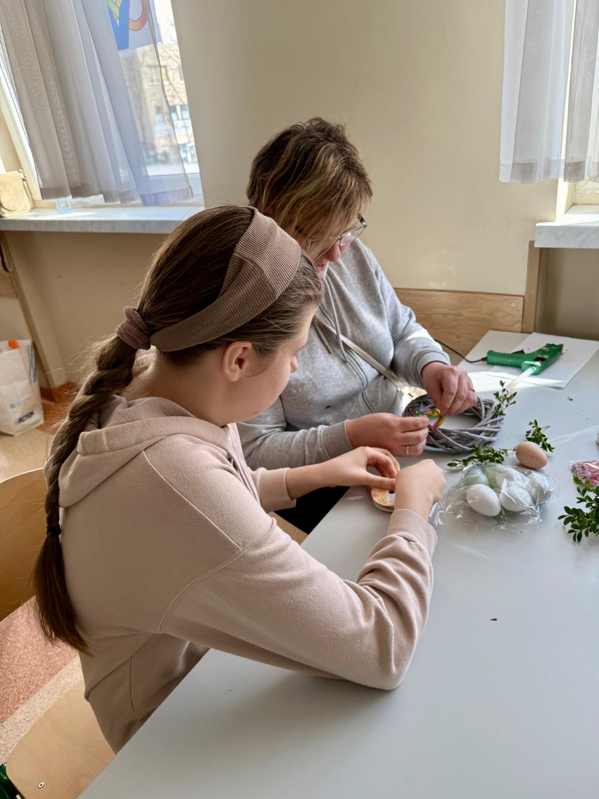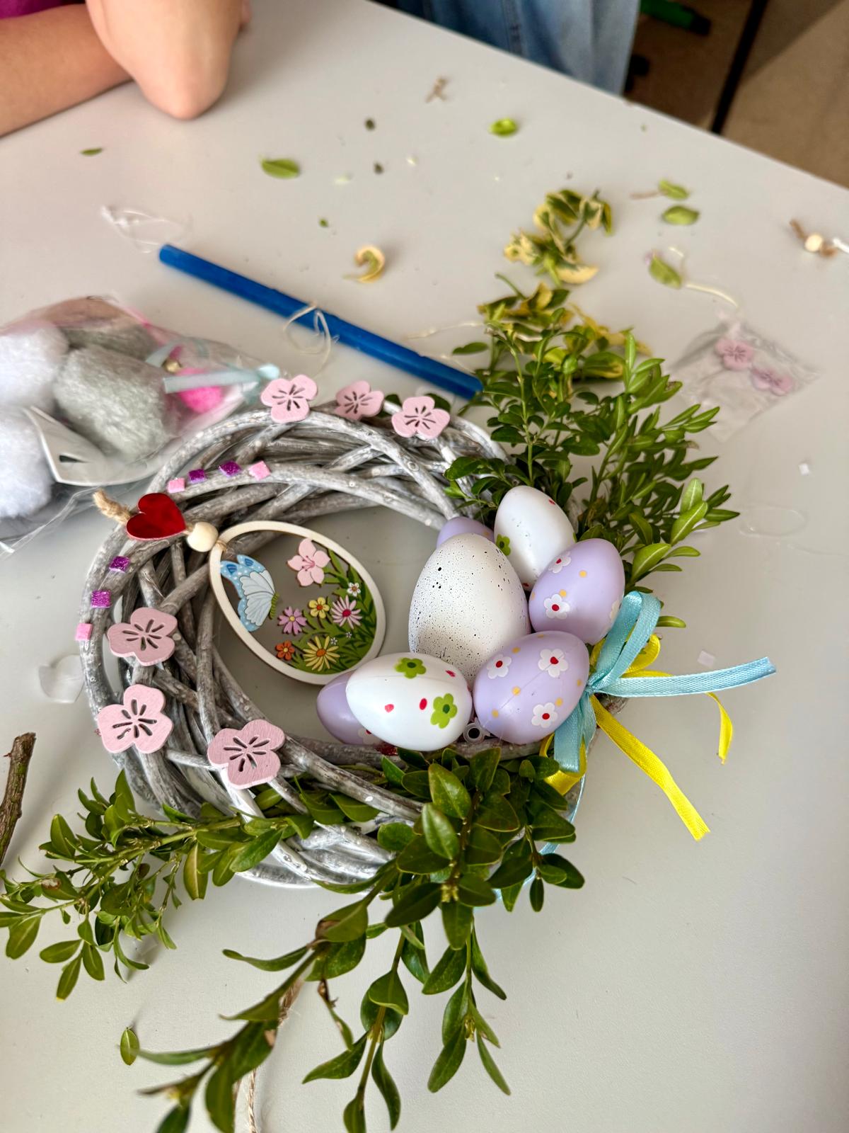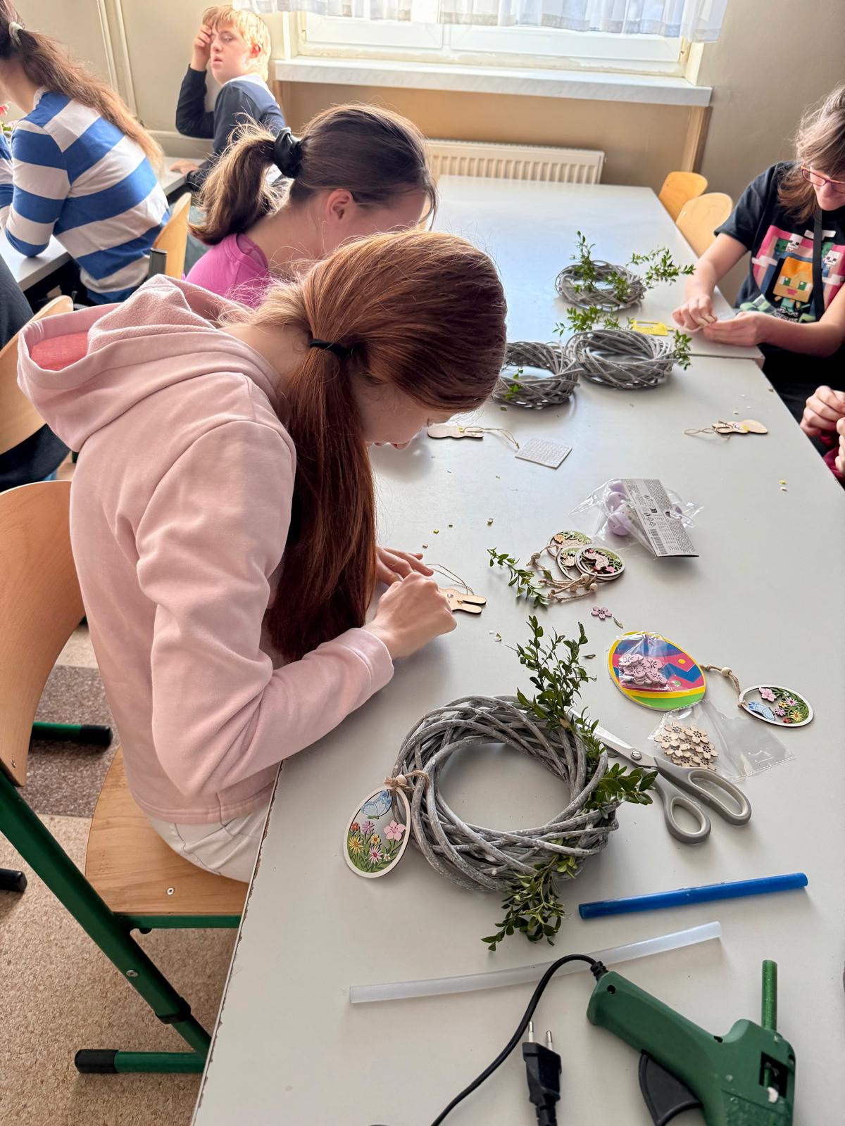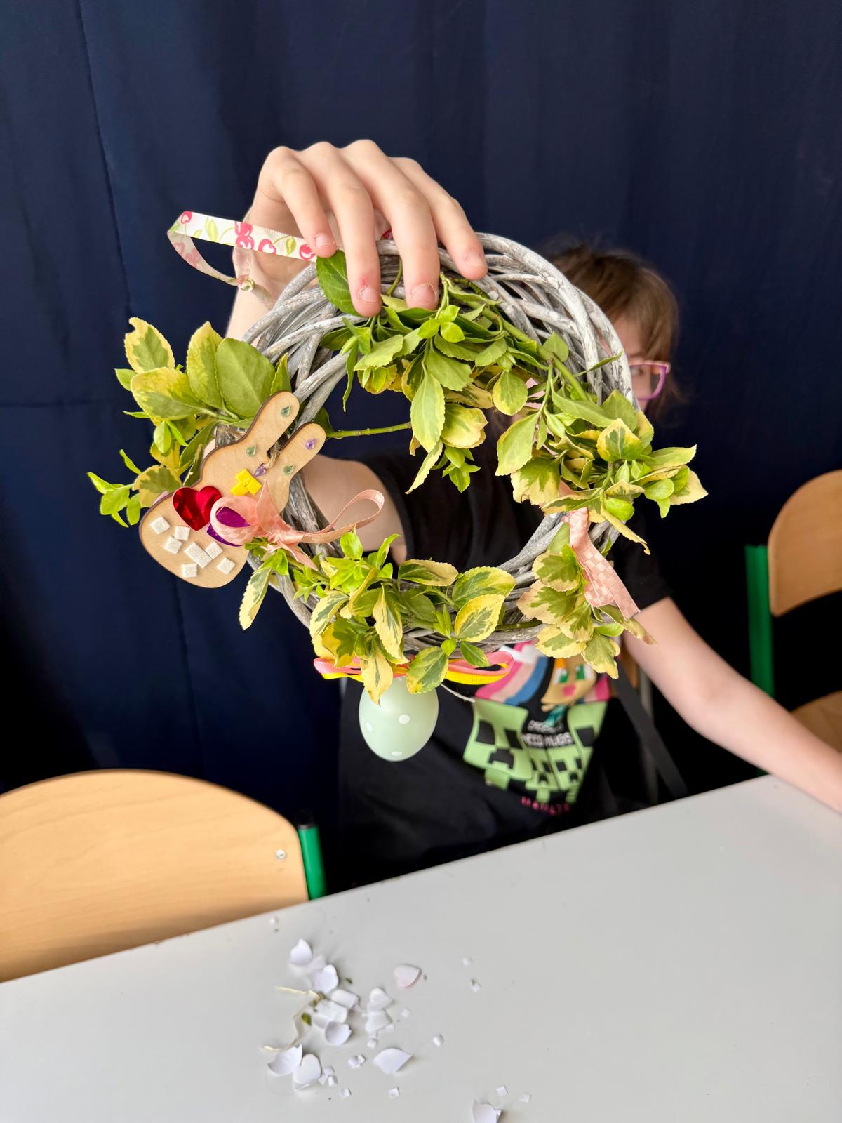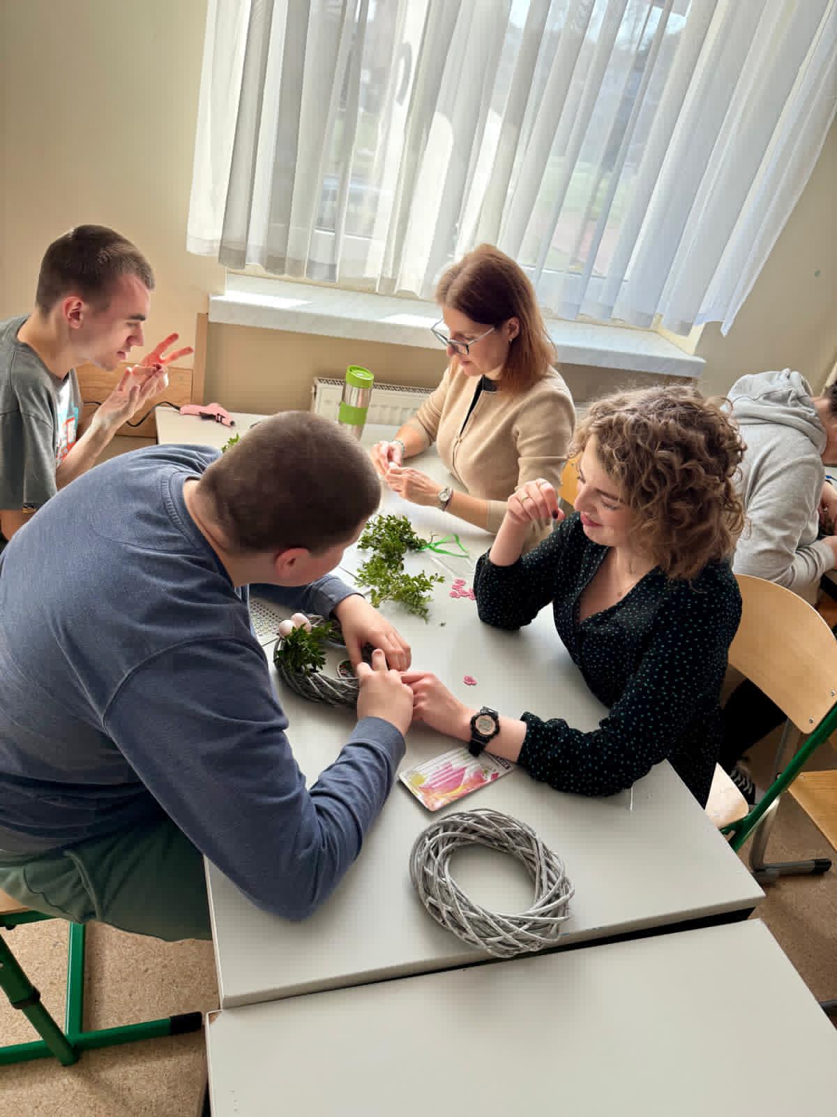 Dzisiaj 25 uczniów z orzeczeniem o niepełnosprawności próbowało swoich artystycznych sił podczas warsztatów tworzenia wianków wielkanocnych.