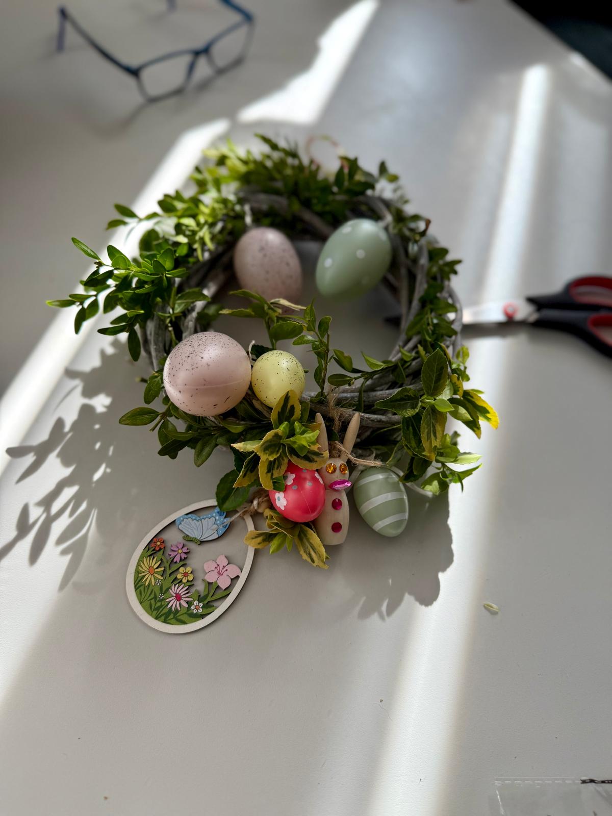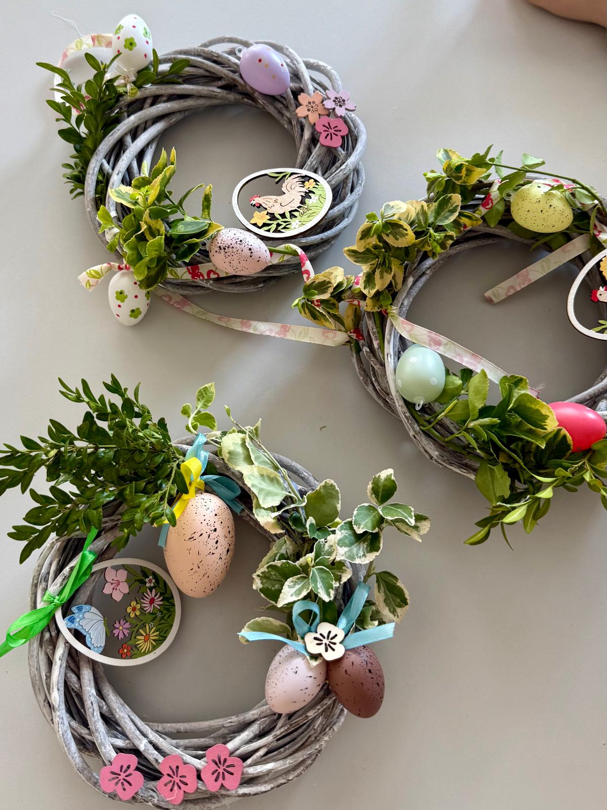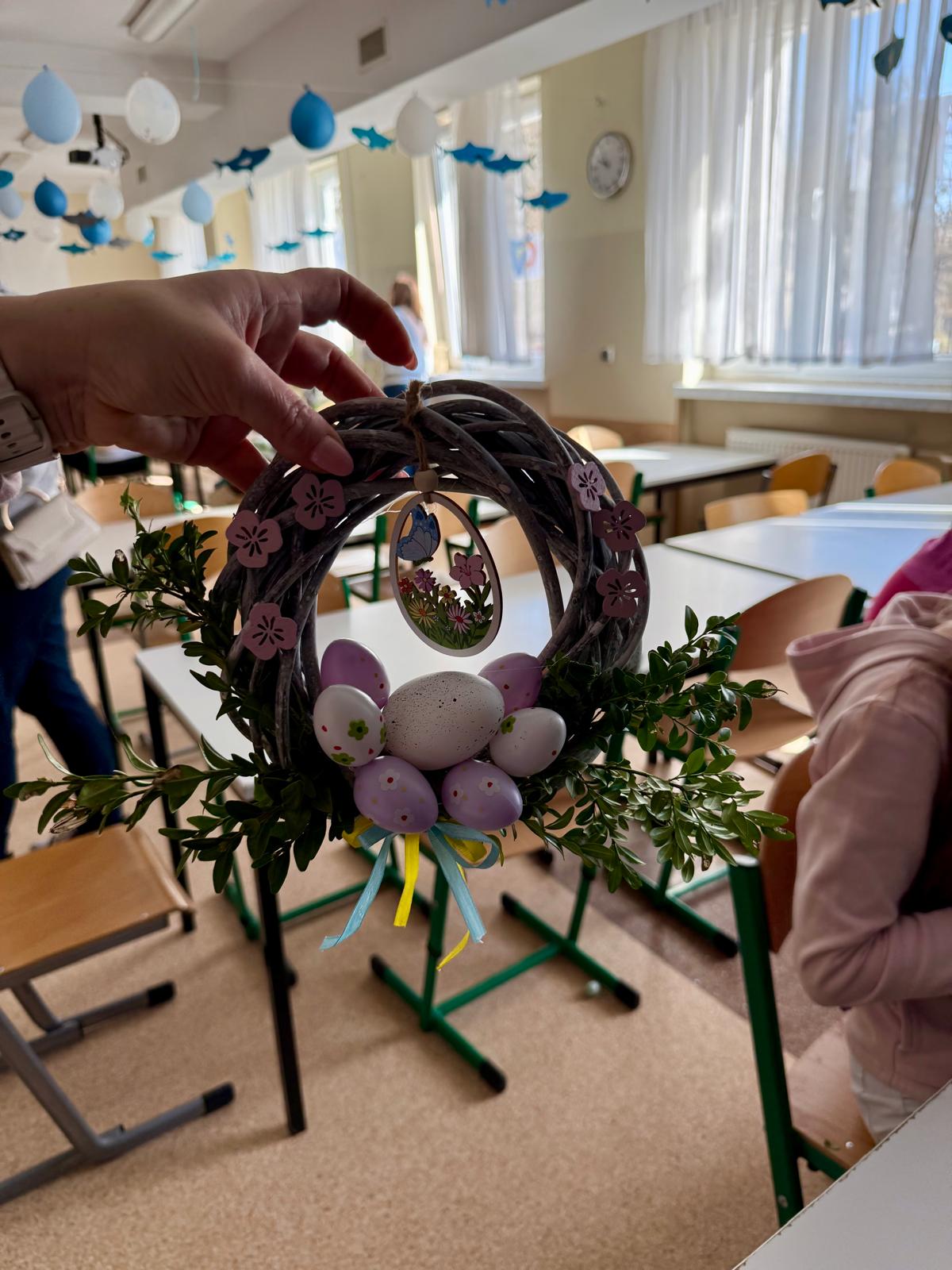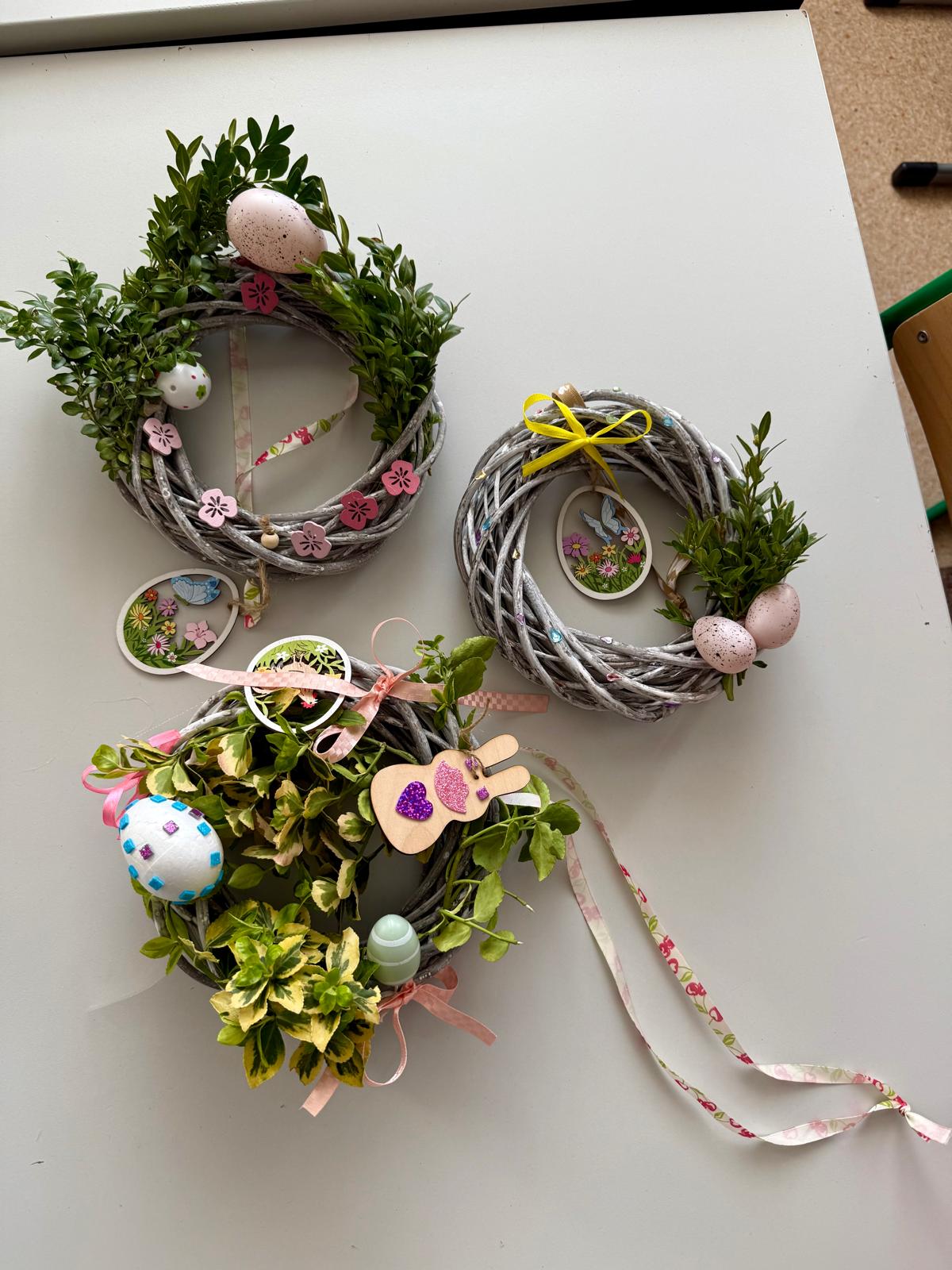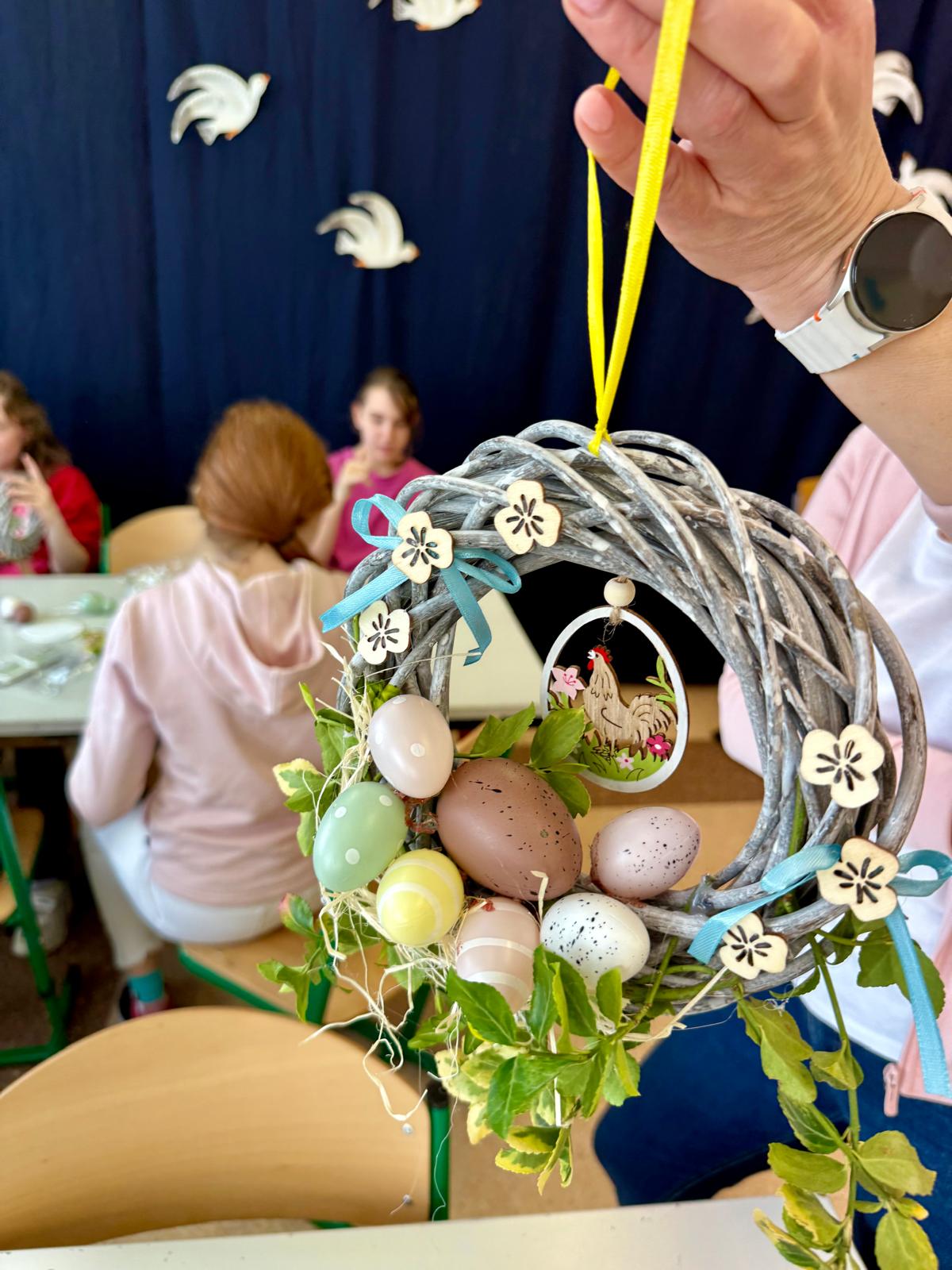 Dzisiaj 25 uczniów z orzeczeniem o niepełnosprawności próbowało swoich artystycznych sił podczas warsztatów tworzenia wianków wielkanocnych.
