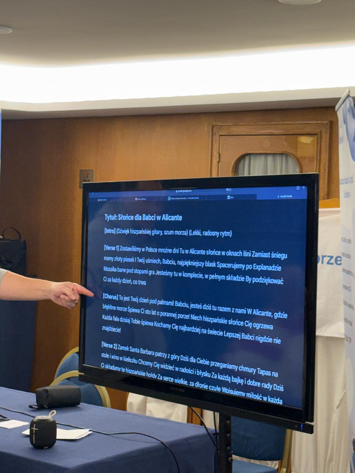 W części poświęconej temu, czym jest sztuczna inteligencja i jak działa „w tle”, nie zatrzymaliśmy się wyłącznie na teorii. Wykorzystaliśmy AI w bardzo praktyczny i twórczy sposób – seniorzy tworzyli krótkie piosenki z okazji Dnia Babci, generowali treści życzeń, pomysły na kartki i drobne formy okolicznościowe. Było dużo wzruszeń, śmiechu i autentycznej radości z odkrywania, że technologia może wspierać relacje, a nie je zastępować.